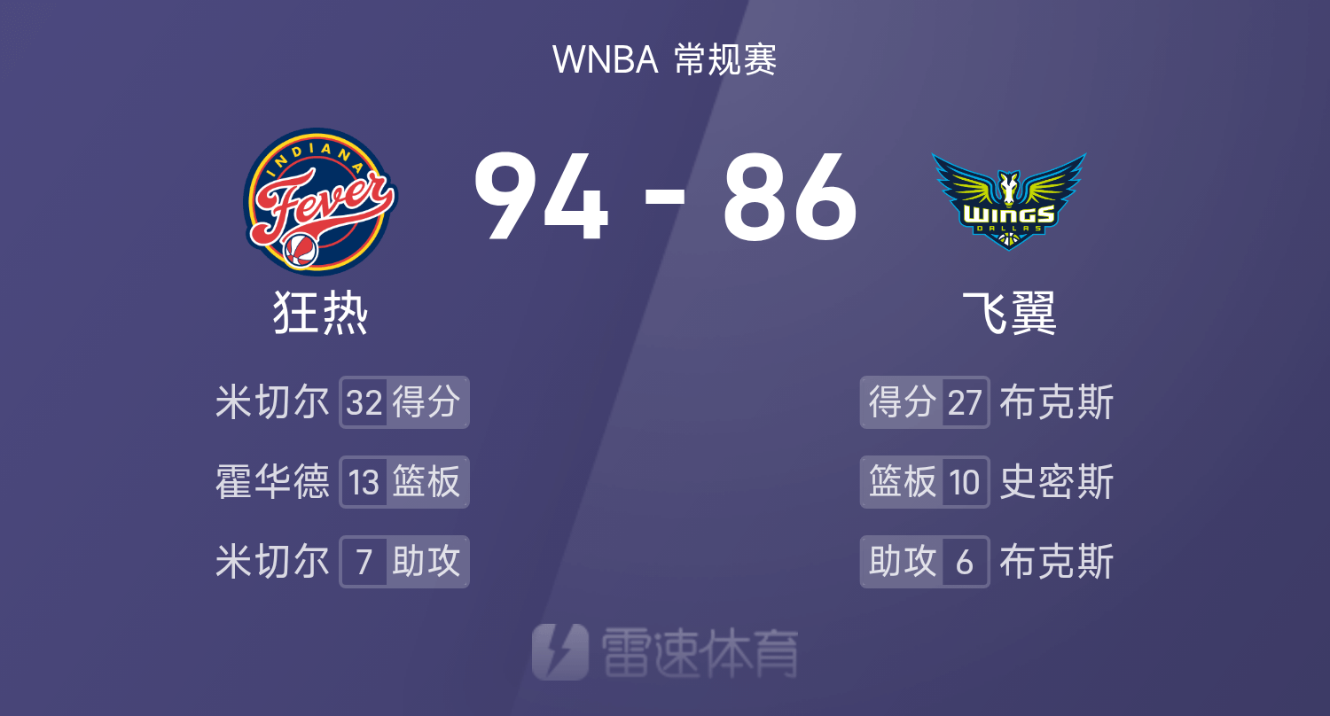 米兰体育06月28日报道,2025赛季WNBA常规赛中,飞翼队与狂热队鏖战至终场,最终飞翼队以86比94不敌狂热队。米切尔全场豪取32分、3篮板和7助攻,成功带领狂热队赢得胜利。