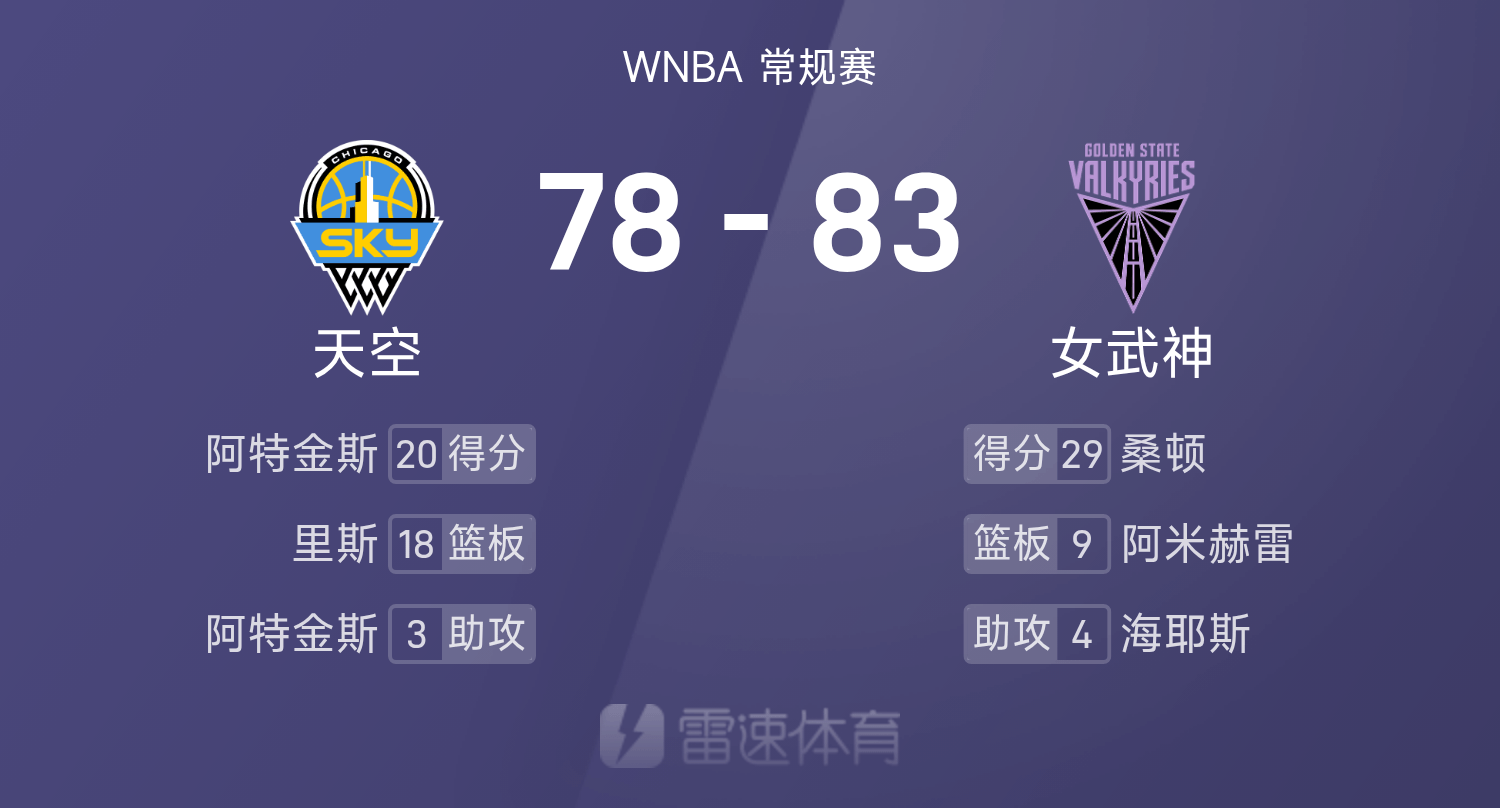 米兰体育06月28日报道:在25赛季WNBA常规赛中,女武神队以83-78击败天空队。桑顿表现出色,拿下全场最高的29分6篮板1助攻,带领女武神获得胜利。
