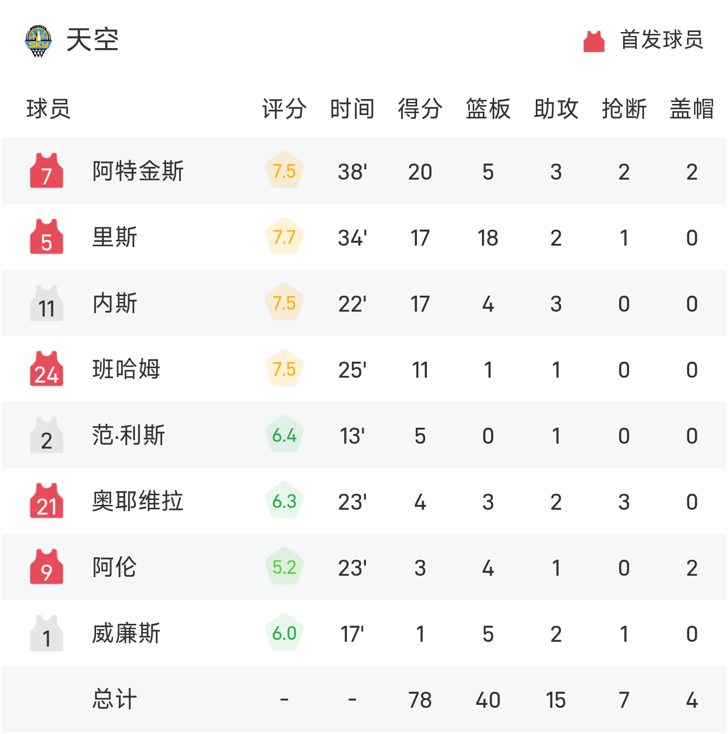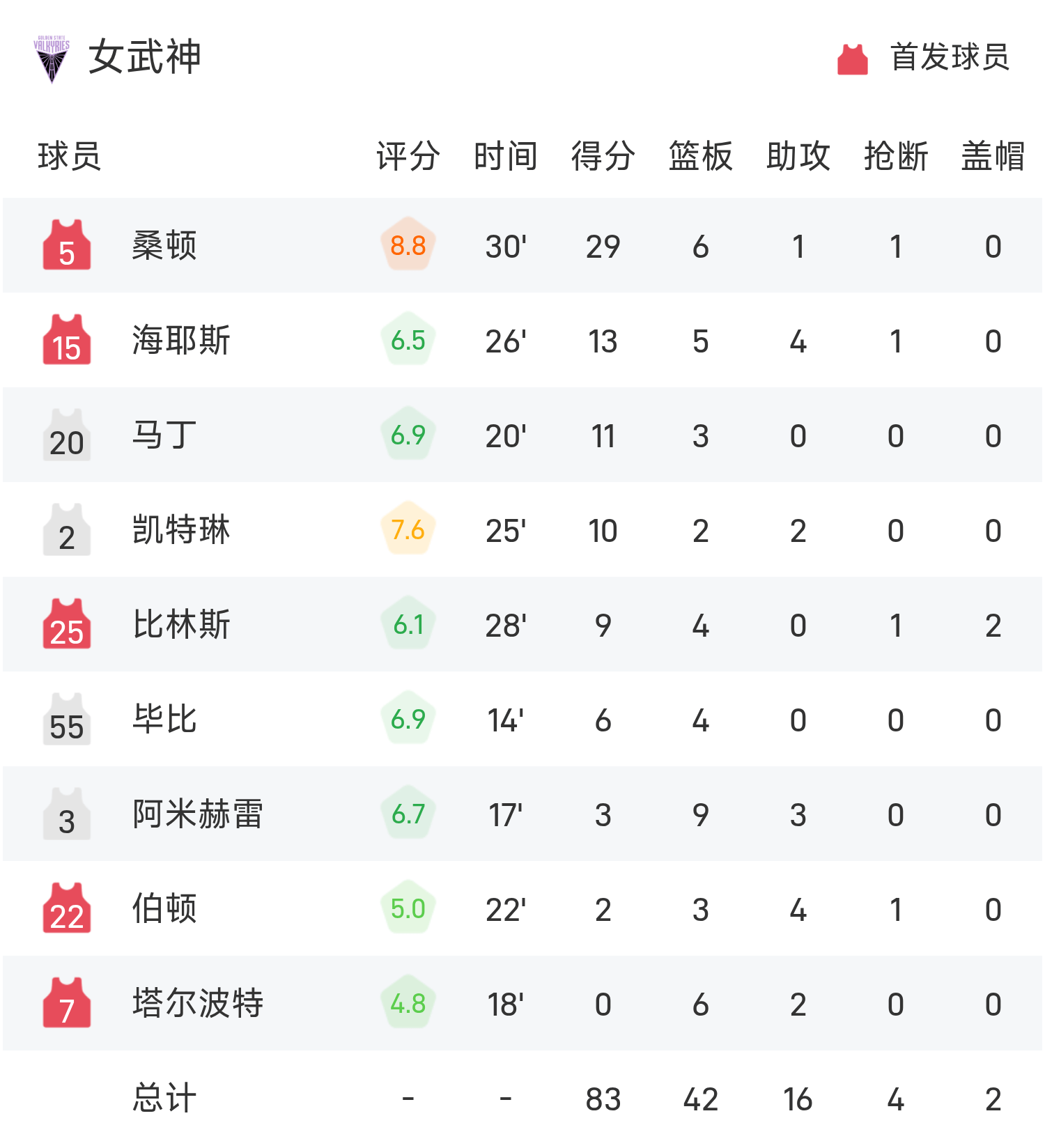 WNBA比赛报告:桑顿29分6篮板,阿特金斯20分,女武神83-78力克天空