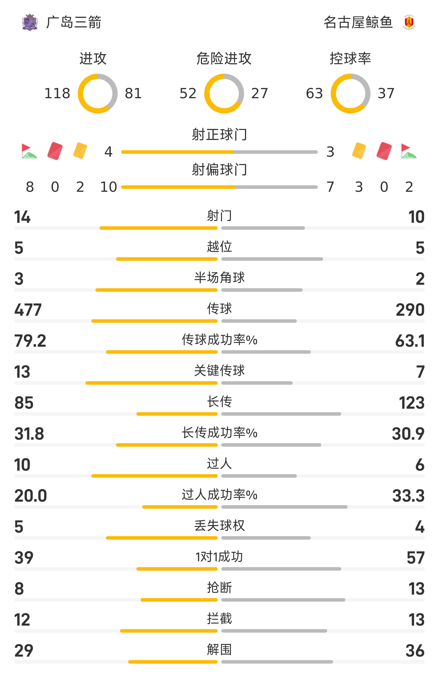 日职联比赛报告:马特乌斯双响,名古屋鲸鱼2-1战胜广岛三箭