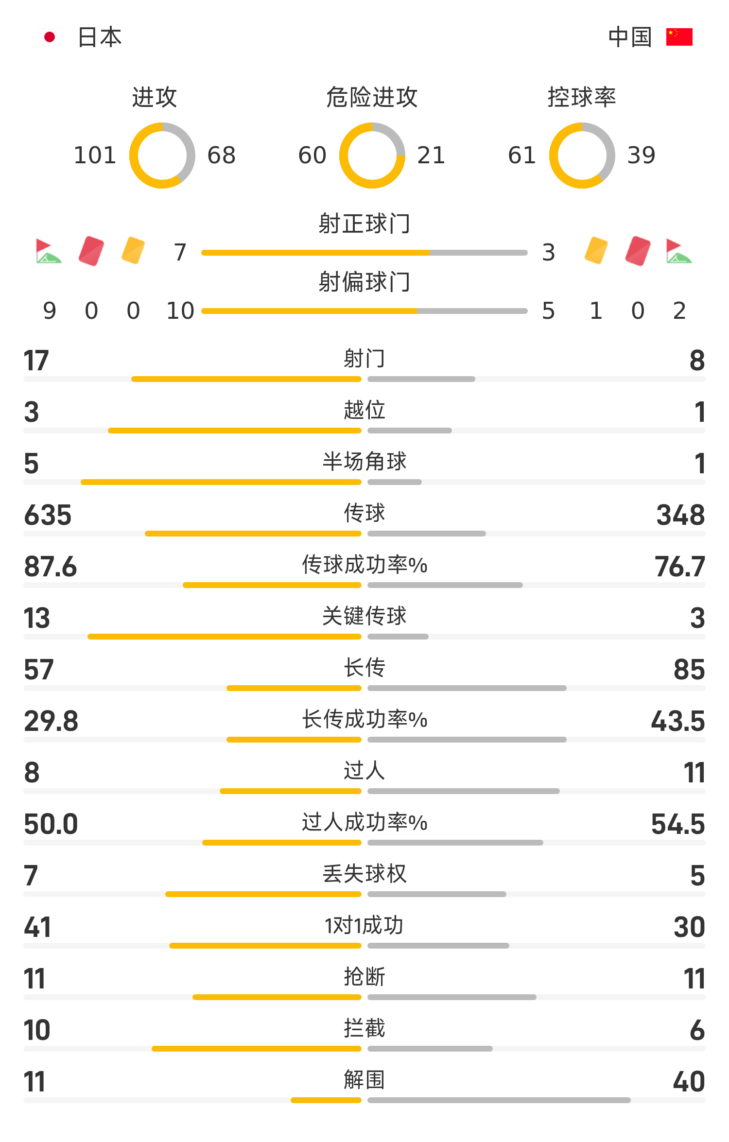 整场比赛结束,中国队以0-2不敌日本队,在东亚杯上再次尝到败绩。